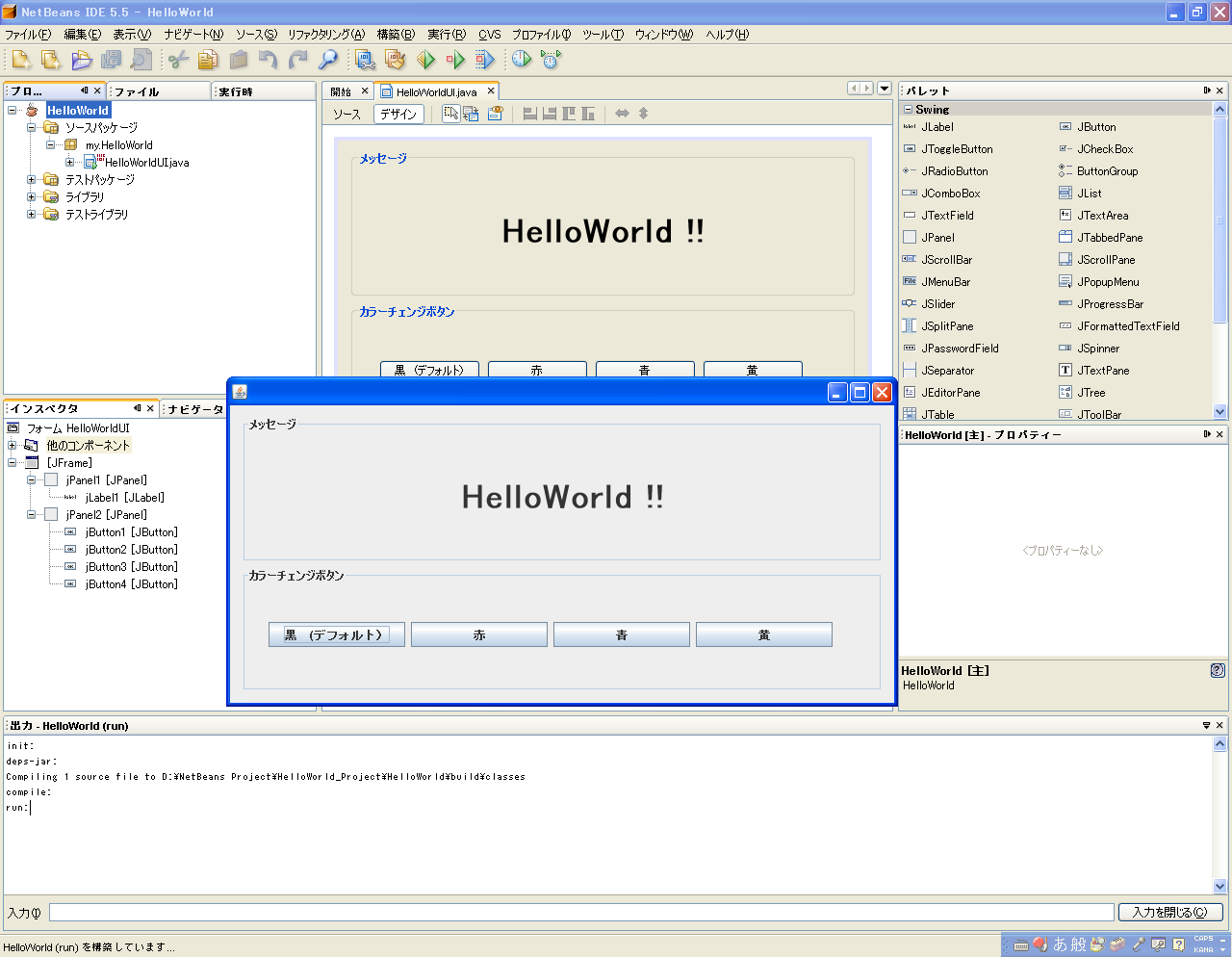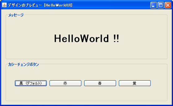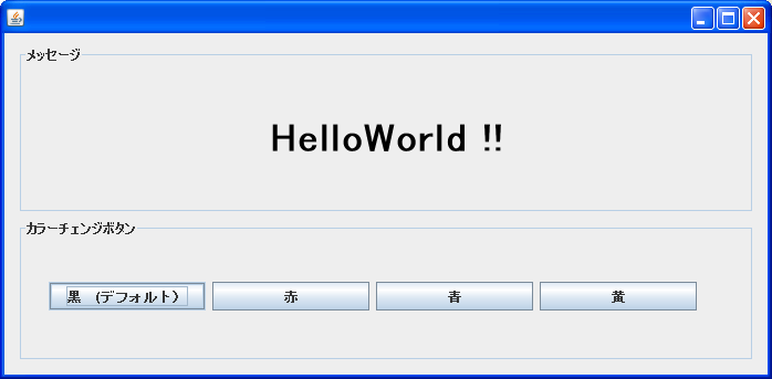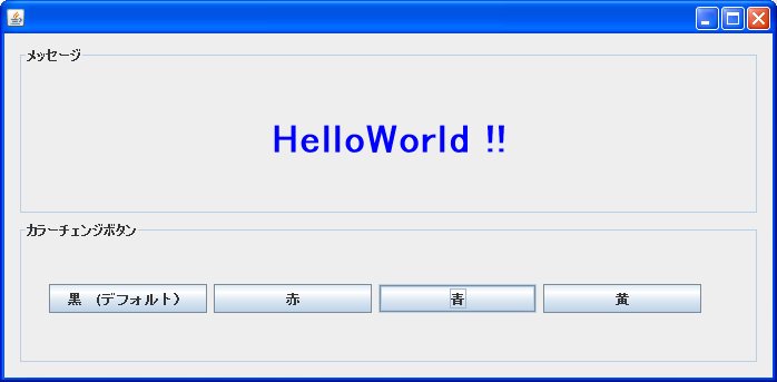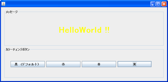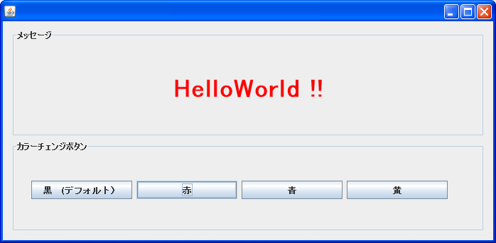 ボタンを押してJLabelの文字の色が変わるか確認します。