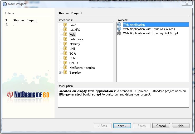[ Web ] → [ Web Application ] を選択し [ Next > ] ボタンを押します。