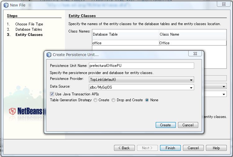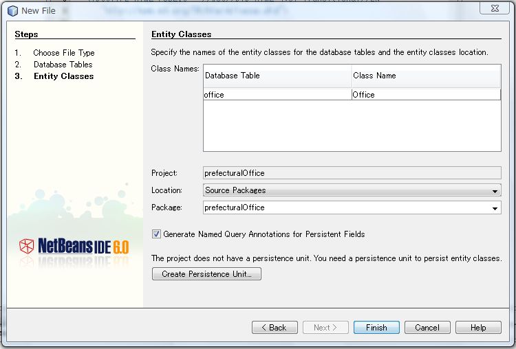 次に [ Create Persistence Unit... ] ボタンを押します。
