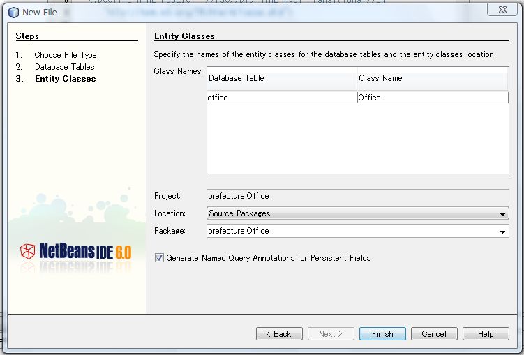 Persistence Unit Name 等の設定画面が出ますので必要に応じて記入します。