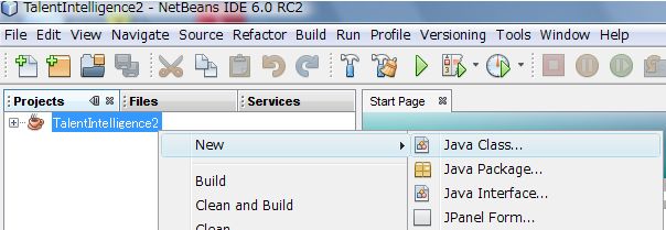 [ TalentIntelligence2 ] → [ New ] → [ Java Class... ] をクリックします。