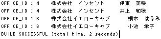 今回のように SELECT 節でカラムをカンマで区切って複数記述した場合、java.util.Vector オブジェクトの要素に格納されて返されます。