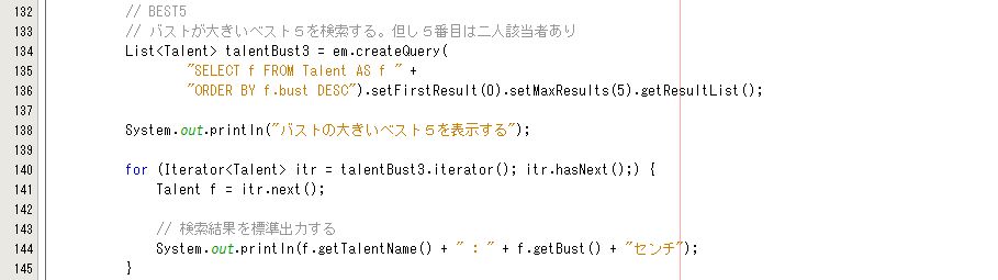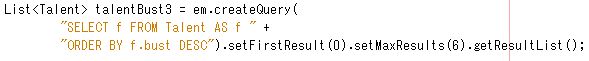 setFirstResult(int arg0) メソッドと setMaxResults(int arg0) メソッドを使いバストが大きい順に5人表示させます。