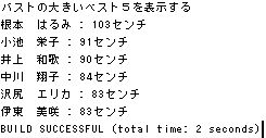 今度は登録されているタレントのバストのベスト5を調べてみます。