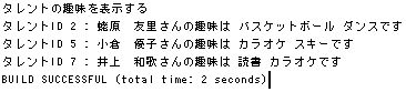 今度は IN 式を使ってタレントIDが2,5,7のタレントの趣味を検索し表示させてみます。