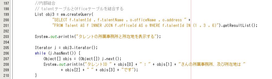 JPQLでの内部結合は、SQLにおける内部結合と同じです。
