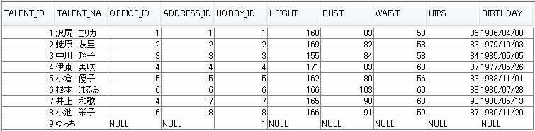 それでは手始めにタレントID 2 のタレントの芸名を検索します。