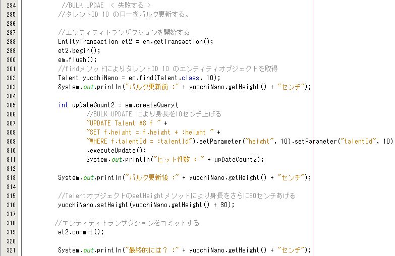 何故かというとメモリ上に存在する永続化コンテキスト内のエンティティオブジェクトと同期が取れなくなるからです。