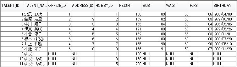 タレントID 11 のローが奇麗さっぱりなくなってます。(^^)