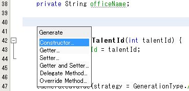 同様に引数に渡したいものにチェックをいれてコンストラクタを作成します。