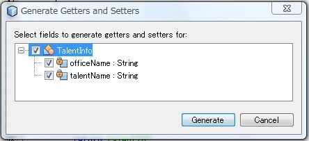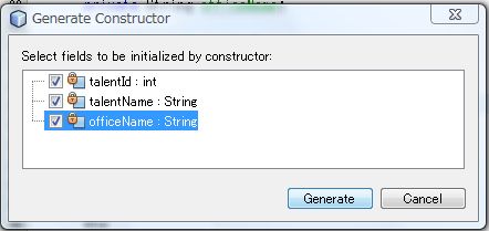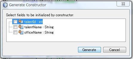 まず、空のコンストラクタを作るのでこのまま [ Generate ] ボタンをクリックします。