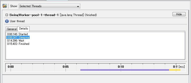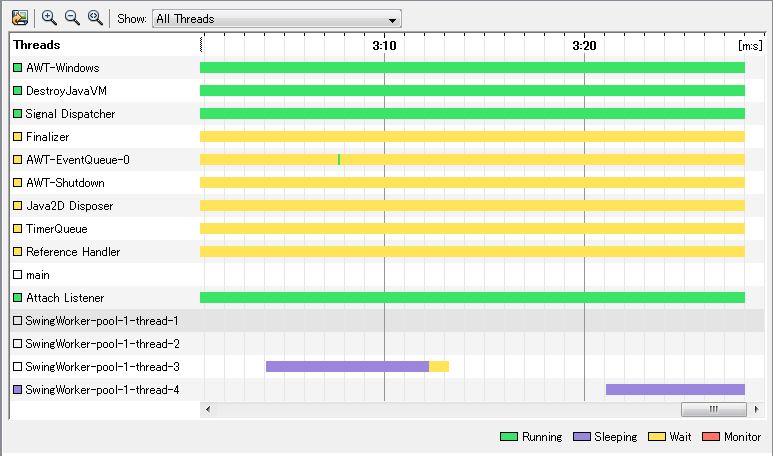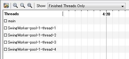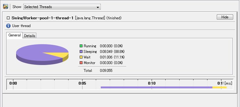 それでは、SwingWorker クラスを使用し、ちゃんと動作するプログラムをプロファイリングしてみます。