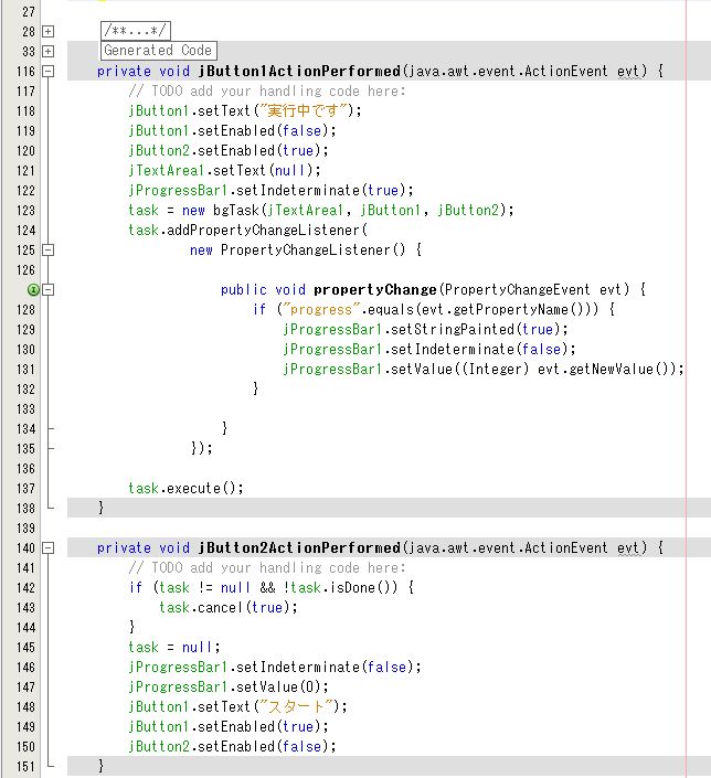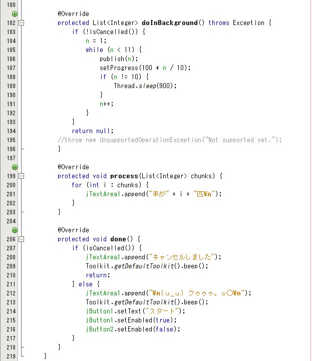 SwingWorker クラス全体の説明は前回と同じなので省略します。