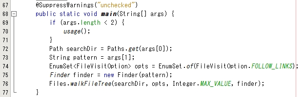 JDK 7 build 58 で採用されている NIO2 の機能の一部である walkFileTree を試してみます。