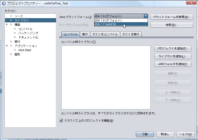 それでは JDK 7 build 58 を NetBeans で使用できるようにします。
