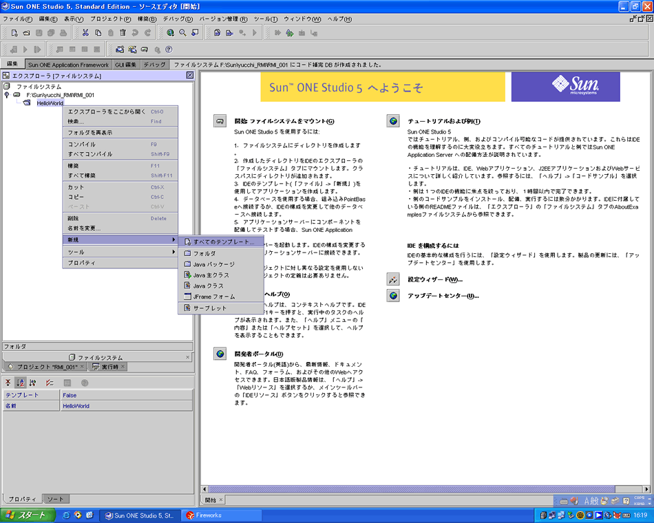 Java Studio のエクスプローラでファイルシステムを選択し、先ほど作成した HelloWold パッケージを右クリックします。