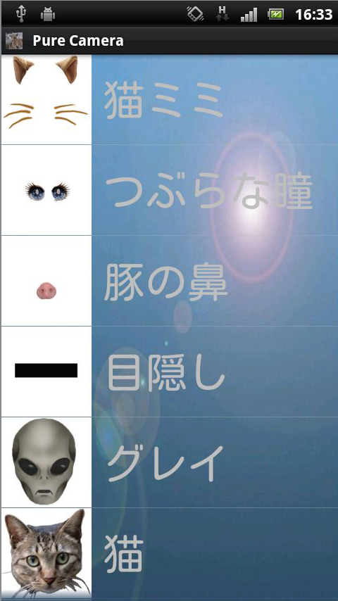 顔認識機能を利用してその場でおもしろ写真を撮影できるアプリです。